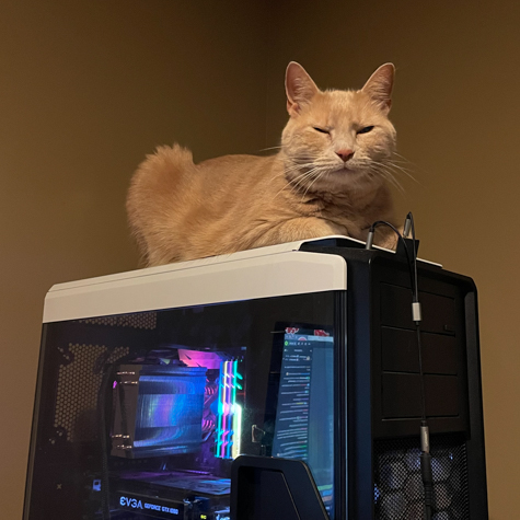 I also enjoy spending time with my son who has orange fur and very chubby cheeks—his name is Will (Chonky). He's very loving and demanding when he wants attention.
